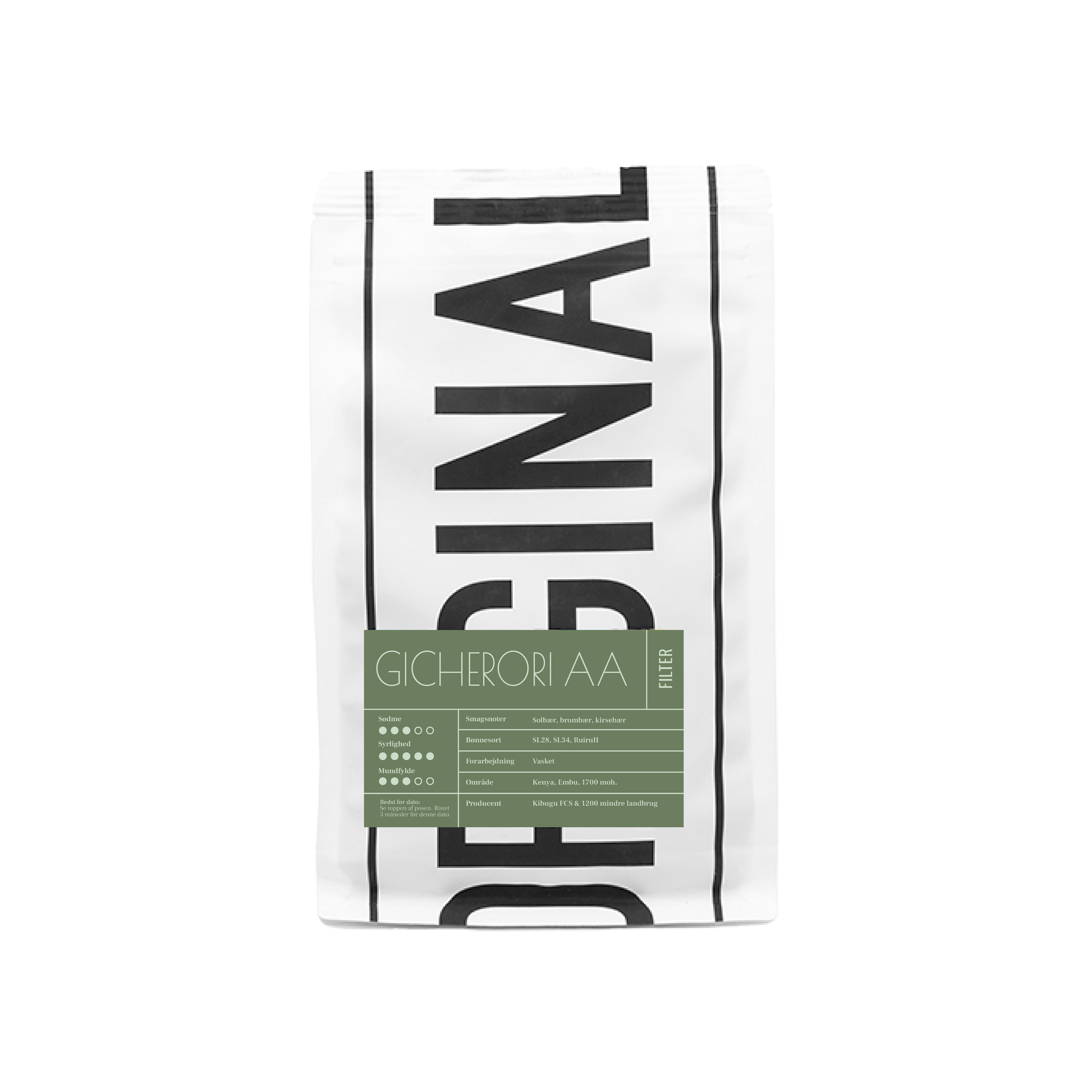 This filter coffee is from the Embu region, located in the central highlands of Kenya. This area is known for having very nutritious soil - and for producing high-quality coffee. The coffee is from the Gicherori washing station, and using the wet processing method gives the coffee a bright, acidic and fruity flavor profile.