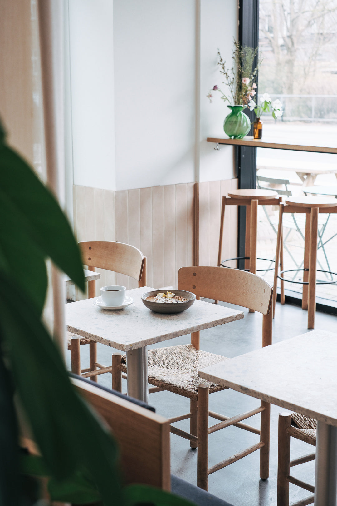 Kaffen er brygget på bønner fra vores eget risteri, og bagværket er lavet fra bunden i vores bageri i Kødbyen. Tag en flat white med ud i solen, eller bliv og sæt tempoet ned et øjeblik.